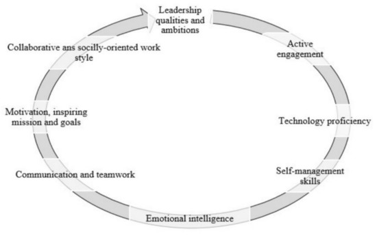 We conclude by stating that in order to ensure the engagement of young specialists and entrepreneurs in the current labor ecosystem and business environment, it is important to forecast and develop skills of the future, to manage their involvement and satisfaction in the workplace, and to have the ability to foresee and react to the changing business environment. Figure 5 shows how different components of modern professional and entrepreneurship culture interact with each other in the context of suggested changes and approaches. The mechanism of this interaction highlights the sequence in which a young specialist has to acquire the general skills and necessary competencies.