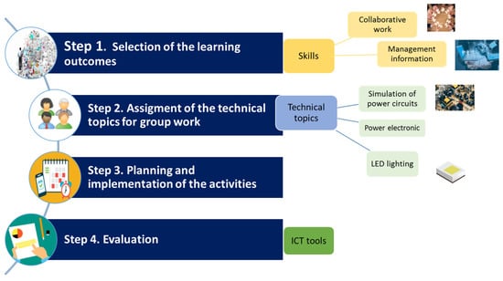 Working groups of 3–5 students to develop the activities in each subject were created. Each group chose a technical topic. The activities were required to deal with the chosen technical topic to achieve the learning outcomes.