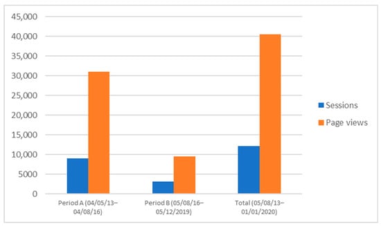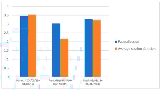 In addition, GA have shown that social media has also been an important source of traffic. Our analysis demonstrated that the sessions from Facebook, which were the most (94.32%), had analogous viewing duration to the website’s average, while the YouTube visitors although they were few had impressive engagement level (long average session duration and more than 5 pages per session). At this point, we should mention that from 2013 until today (2020), the use and social media and social networks themselves have changed in the form as well as the interaction they cause [20], while new technical promotions were created due to constant technological changes [74], and social media optimization (SMO) and social media analytics (SMA) (e.g., Facebook analytics, etc.) now exist [20,74]. All of these are now useful tools for both the promotion and the sustainability of cultural heritage from and through the Internet.
