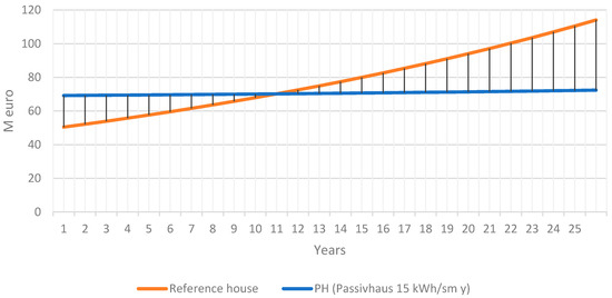 Nonetheless, savings on energy bills over the years make PH convenient throughout Chile. The PH amortization average in Chile (Figure 6) indicates that savings made after 11 years of investment recovery correspond to more than 100% of the initial investment. Furthermore, this analysis does not consider the costs associated with house maintenance (which, in Chile, vary between 15% and 25%) and related to building quality deficiencies [56]. These considerations would increase the savings provided by PH housing.