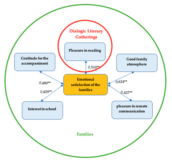 Correlations between “emotional satisfaction of the families” and the remaining variables in the families’ experience with “Books that Bring People Together”. Source: our own elaboration.