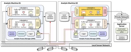 As already mentioned, DRSSA is based on a distributed processing approach. Eventually, the traffic violation output from processors or analytic programs must be transmitted and collected centrally. This occurs at the Application Server layer. However, this transmission can fail due to unstable connections between analytic machines and the centralized server. To prevent such data loss, we design the system architecture of each analytic machine to contain a local database that acts like a buffer for traffic violation output. The local database also simplifies the analytic module because it only needs to output to a local database. However, this does require a separate module running on the analytic machine to handle this task.