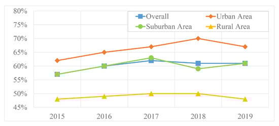 Figure 10). In urban and suburban areas, where DRSSA is deployed, compliance is at 68% and 61%, respectively, compliance in rural areas not covered by DRSSA dropped from 50% in 2017 to 48% in 2019. Despite the significant drops in the number of helmet violations detected by DRSSA, the overall percentage of motorcycle drivers wearing helmets over the entire province has not changed. The reason is that compared to the total number of motorcycle drivers not wearing helmets, the number of deployments and tickets generated by the system has been too low to affect compliance province-wide. We observed a significant impact at specific sites only where DRSSA is deployed.