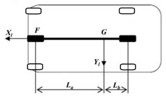 Modelling the dynamics of this vehicle has been performed using the bicycle model (see Figure 2). In [32] it is defined in more detail. This paper considers the following simplifications: (a) roll and pitch movements and side-load transfer are not considered, (b) aerodynamic effects are not considered, (c) a plane model of three degrees of freedom has been used, (d) the steering angle has a restriction related to its maximum value, (e) the front wheels are simplified into one that will exert force corresponding to both, (f) the rear wheels have the same simplification, (g) the steering angle corresponds to that of the single front wheel of the model, and (h) the sideslip angles and their gradient are small.
