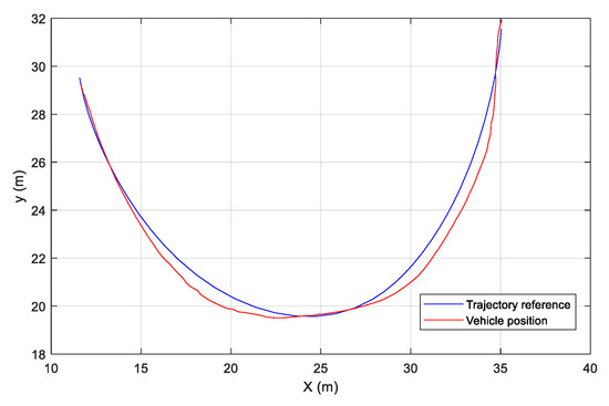 Figure 14 shows the trajectory reference and the path executed by the vehicle. As can be seen, the vehicle follows the reference with a very small error.