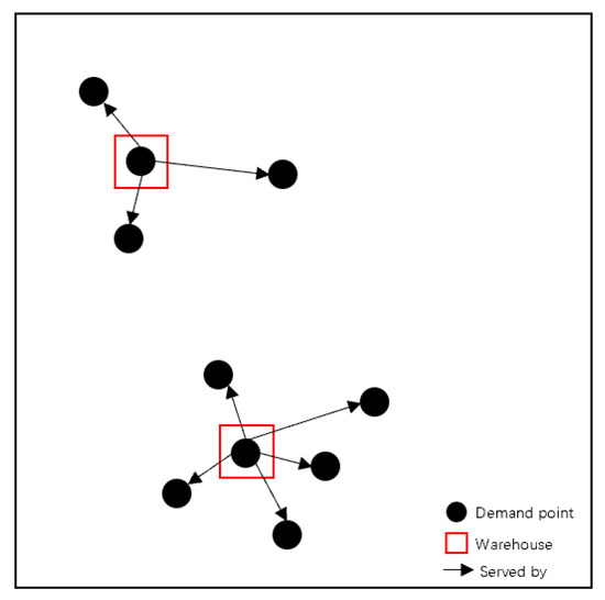 - All demand points are classified into one class, and the value of secondary objective function is 1.