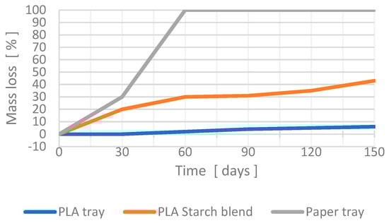 Comparison in mass loss of various types of polymerized polylactic acid (PLA) compared to common paper tray used for food distribution [].