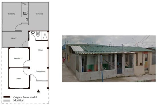 On the other hand, over the last year in this estate, it was noticed that some houses were modified from the original design, as evinced in Figure 3. The mentioned modification consisted in using the area intended as a patio for building additional rooms, such as bedrooms, bathrooms, storages, etc. All of this was done without demolishing the original house model delivered. Thermal properties of materials of the envelope elements for original and modified houses are the same, and they are shown in Table 2.