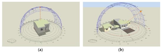 where TS is the thermal sensation transfer coefficient; MW is the internal heat production in the human body; HL1 is the heat loss difference through skin; HL2 is the heat loss difference by sweating; HL3 is the latent respiration heat loss difference; HL4 is the dry respiration heat loss difference; HL5 is the heat loss by radiation: and HL6 is the heat loss by convection. The calculation of PMV requires different input data. Information about occupants is defined as constant values, and the indoor environment characteristics are defined as hourly input data. The metabolic rate and clothing insulation of the house’s occupants were obtained by on-site verification. Air temperature, radiant temperature, air velocity, and relative humidity were obtained from the energy simulation. The first evaluation of the thermal comfort of the three types of houses is known as the base case.