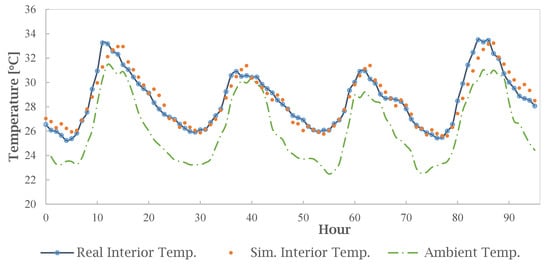 It must be considered that the methodology described by ASHRAE Guideline 14-2014 expresses that the raised information is used for energy consumption analysis. Nevertheless, this research counts additionally with the data of air temperature, inner and outer surface’s temperature of a window, roof, and a wall. Besides, to accept the calibration conditions of the construction materials, the methodology described in Guyceter’s work was used [21].