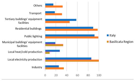 In Section 2, a spatial assessment of the Italian signatories and the corresponding SEAPs developed is presented according to the Nomenclature of Territorial Units for Statistics (NUTS) 1. The investigation of the intervention sector occurrences represents a second elaboration considered to be useful for enabling a deeper understanding of the differences in approaches promoted through the development of the SEAPs in different areas.