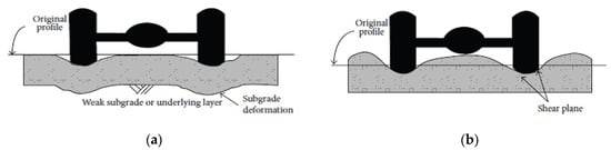 (a) Consolidations rutting in flexible pavement; (b) Instability rutting in flexible pavement [65].