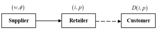 - In the SS game, Lemma 1 shows that Equations (15) and (16) are the retailer’s best response functions. The supplier will get the maximum profit of the whole supply chain by , . Therefore, the equilibrium of the SS game is , , and ;