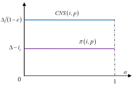 In addition, when and , from Equation (3), we can obtain the optimal consumer net surplus as follows: