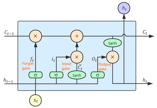 LSTM is a modification of the recurrent neural network (RNN); it expands the computing unit of the traditional RNN and uses a gating mechanism, which can solve the problem of gradient disappearance or explosion in the processing of long sequence data. The structure of the LSTM unit is shown in Figure 3.