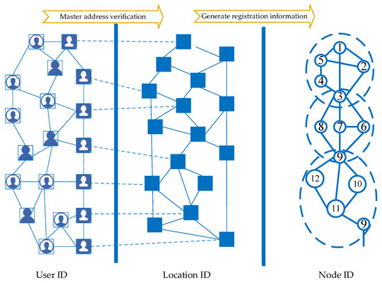 All information on the permissioned blockchain would be open and transparent under conditions of full privacy protection. Addresses on the blockchain correspond to devices or vendors. Entity identification (ID) information is separated from entity authentication by means of entity mapping protocol and zero knowledge proof. On the one hand, the existing blockchain algorithms could be optimized by making full use of entity mapping information, including network sharding algorithms, consensus algorithms, virtual machines, etc. On the other hand, it can provide functions that anonymous blockchains do not have, such as voting by person and penalizing by address. The multiple ID model of a permissioned blockchain is shown in Figure 1.