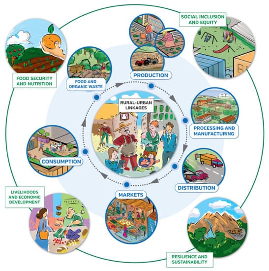 - urban–rural linkages that spread the opportunities and benefits of CRFS from producer to consumer building polycentric food networks [3];