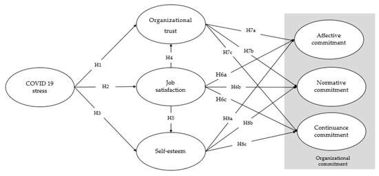 Researchers emphasized organizational trust to be an important factor in maintaining employees’ commitment to an organization (see [51,52]). For example, in a study by Yilmaz [52], primary-school teachers’ trust in administrators was identified to be an important antecedent predicting affective and continuance commitments. Yilmaz [52] revealed that the more primary school teachers exhibit positive views on organizational trust, the more they exhibited higher levels of commitment to their organization. In the hotel setting, Liu et al. [51] also found a positive relationship between organizational trust and organizational commitment. They revealed that when hotel staff members fully trust their organization (i.e., hotel) or its superintendents, those employees accept extra work and greater responsibilities from their organization. Thus, given the preliminary evidence provided above, this study hypothesizes that: