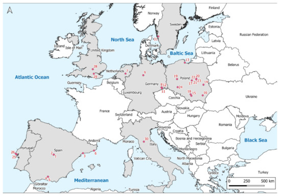 Survey questionnaires were completed by garden managers from Poland, Germany, the Netherlands, Portugal, Spain, United Kingdom, Sweden, and Italy (Table 1, Figure 1).