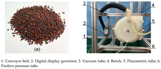 The seeds of “Shanghai Ai Ji” were used as experimental material for the study. A self-built double-row metering device bench (Figure 6) was used for the experiments.