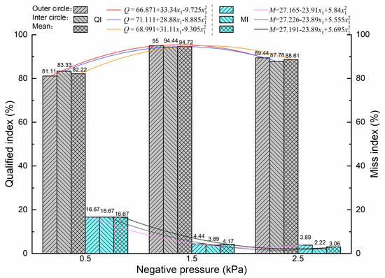 From Figure 7, it can also be seen that the QI of inner and outer circles was high (Q ≥ 92%) and the MI of inner and outer circles was low (M ≤ 4%) when the NP was in the range of 1.57–2.16 kPa.