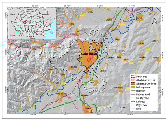 - Araboaei, L.; Araboaei, M. Schimbări geografice în perioada tranziției și problemele municipiului Alba Iulia în raport cu rolul și poziția în rețeaua urbană actuală. Pangeea 2014, 14, 70–80. [Google Scholar]