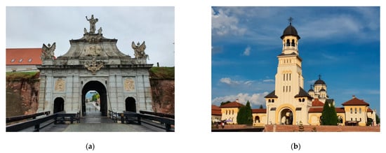 Alba Iulia: (a) the third gate of the fortress and (b) Coronation Cathedral (© image source: personal photo archive of G. Rustoiu).