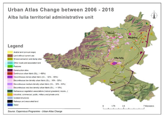 Distribution of urban changes in the Alba Iulia territorial administrative unit between 2006 and 2018.