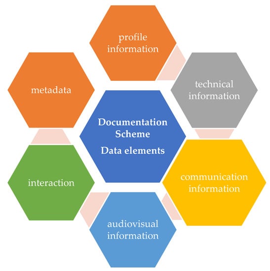 The data collection method and tools used were scraping and searching thoroughly through official Instagram profiles and completing a documentation scheme for data entry designed for this purpose. The form included 60 closed-ended and open-ended purpose-built questions that required inputting values and specific information and data elements. These questions were grouped into thematic units (e.g., profile information, technical information, communication and audiovisual information, interaction, metadata), as Figure 1 shows.