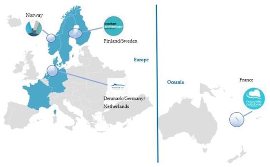 The data were collected in April and May 2020. The database was created only through UNESCO’s MWH of OUV protected areas and Europe sites, which had created an official social media account and an Instagram profile. These cases were seven out of the 14 UNESCO MWH of OUV protected areas and sites of Europe, representing six out of 11 countries, as in Figure 2: Denmark, Wadden Sea (transboundary property); Finland, High Coast/Kvarken Archipelago (transboundary property); France, Lagoons of New Caledonia: Reef Diversity and Associated Ecosystems; Germany, Wadden Sea (transboundary property); Netherlands, Wadden Sea (transboundary property); Norway, West Norwegian Fjords—Geirangerfjord and Nærøyfjord; Sweden, High Coast/Kvarken Archipelago (transboundary property).