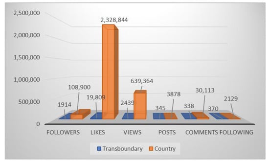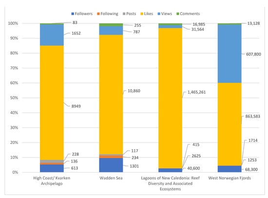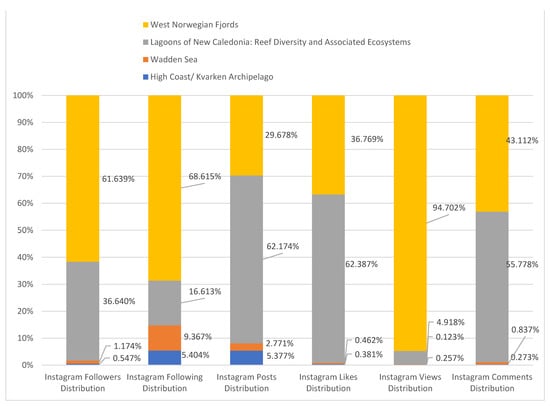 The statistical results of the social media footprint through the Instagram profiles of the researched UNESCO MWH of OUV protected areas and European sites are presented in Figure 5.