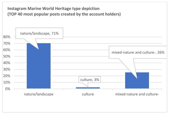 According to the research findings, and with regard to the social media footprint through the Instagram profiles of the researched UNESCO MWH of OUV protected areas and sites of Europe and the type of site with regard to property, the following results are observed, as Figure 4 shows.