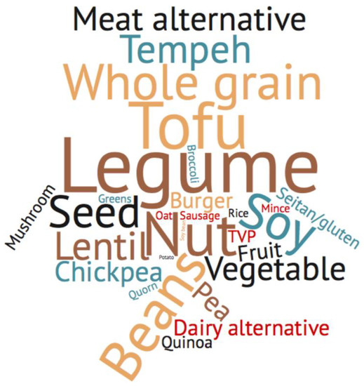 - Curtain, F.; Grafenauer, S. Plant-Based Meat Substitutes in the Flexitarian Age: An Audit of Products on Supermarket Shelves. Nutrients 2019, 11, 2603. [Google Scholar] [CrossRef] [PubMed]
