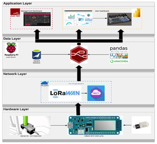 - Santos, D.; Ferreira, J.C. IoT Power Monitoring System for Smart Environments. Sustainability 2019, 11, 5355. [Google Scholar] [CrossRef]