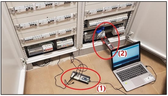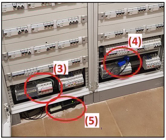 When determining the local to be monitored, it was necessary to know exactly where to implement the sensors (i.e., which electrical switchboard in the office area and which three-phase current cable to measure). To know this necessary information, an analysis of the electrical network of the campus main building, Building 1, was performed together with the facility maintenance staff, which provided all the information and authorization to implement the sensors safely, without disturbing the normal functioning of the university. This collaboration is one of the key drivers for success in this kind of project, and we found that facility management could also benefit from this research.