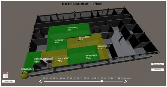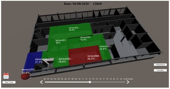 The building information model (BIM) includes the complete geometric description of the building and equipment such as furniture as well as the designation of the departments in the form of a label, which allows the visualization of the location where each sensor was installed.