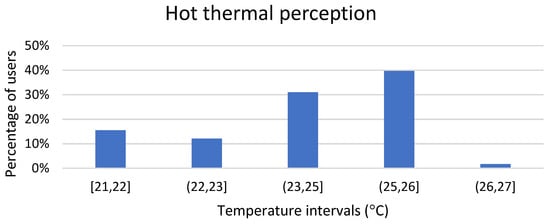 In Figure 13, we determined the intervals where most people classified the room as hot. From the results, we could identify that the majority of users perceived hot from 23 °C upward.