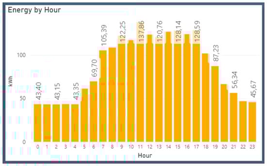 By interpreting the energy consumption data presented in Figure 15, we can conclude that the office had a constant energy consumption of approximately 50 kWh during the day. This consumption came mostly from the users’ computers, printers, and lighting, which were always on during the day. However, we could see that consumption increased with the working hours of the local users, who started working between 7 and 8 a.m. and left at 6 to 7 p.m. This increase in consumption is normal, as users use more electronic devices that consume energy as well as the use of the air conditioning system.