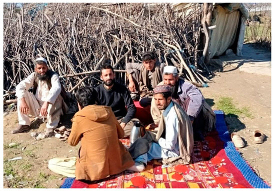 Study participants were selected by snowball sampling, starting from elderly community members, who could be perceived as LEK holders. All the interviews were conducted by the first author (Figure 2) in the spring of 2020, in the two main local languages spoken by the community members (Pashto and Farsi/Persian). The ethnobotanical information was gathered from in-depth interviews after obtaining prior verbal informed consent and the Code of Ethics of the International Society of Ethnobiology (ISE) [29] was strictly followed. The interviews focused on current and past uses of wild vegetables and other herbal ingredients, which included information on plant folk names, details of use, and procurement. Mushrooms as well as wild fruits were excluded in the current survey, because they are cognitively well separated from the category “herbs” in the local folk taxonomy and because of the difficulties in eliciting information about food items, which are normally not collected during the spring. Particular attention was paid to record the medicinal perception of wild plant-based preparations [30,31].
