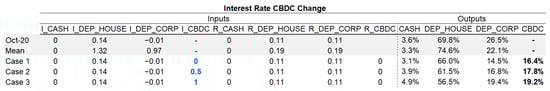 Scenario 5. Note: This model can also be expanded to include a broader number of financial assets, including holdings of debt instruments or stocks amongst others. For the sake simplicity we have not included such additional financial assets in this paper, and we focus on the transfer of wealth after the introduction of CBDC amongst: (i) Cash, (ii) Household commercial bank deposits, (iii) Corporate commercial bank deposits, and (iv) CBDC.