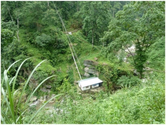 To explore this, the case study of micro-hydropower development in Nepal is considered. In Nepal, micro-hydropower refers to electricity generation using hydropower at less than 100 kW [8]. A typical micro-hydropower plant (MHP) is shown in Figure 1. There are approximately 3300 community-owned and community-operated MHPs installed in Nepal [9]. The majority have been funded through subsidies administered by the Alternative Energy Promotion Centre (AEPC); since 2006, the Rural Energy Policy and Subsidy for Renewable Energy has ensured subsidy delivery for renewable energy technologies, including micro-hydropower [10]. From the 1960s, development efforts by international donors have resulted in the creation of a domestic micro-hydropower manufacturing industry, which still produces most of the generating equipment today [11,12]. Schemes are initiated by communities who must contribute financially and physically during construction [13]. Following installation, communities are responsible for owning and operating the plants themselves. Despite the presence of other renewable energy technologies for community electrification (including solar, wind and hybrid systems), in Nepal, micro-hydropower is established as the dominant technology in the hilly and mountainous areas. This paper focuses on micro-hydropower in this context; the selection of other forms of mini-grid technology is not considered.