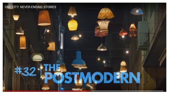 The “Pittaki Street project” is probably the most characteristic example regarding the connection to city marketing, despite the fact that it is a temporary intervention rather than a temporary use as defined in this article. Pittaki Street was an underused, small street which completely changed its image through a lighting installation in 2012, based on an effort by people from the neighborhood and citizens that were invited to donate old lamps, chandeliers, and lamp caps. Although this was a limited intervention, its impact was important and created a discussion on citizen-led actions in the city. Looking at the main promotion video of the municipality of Athens, the image of Pittaki (Figure 1) is presented as one of the main identities—the “postmodern” one [36]. In 2019 the installation was discontinued by the group that initiated it.