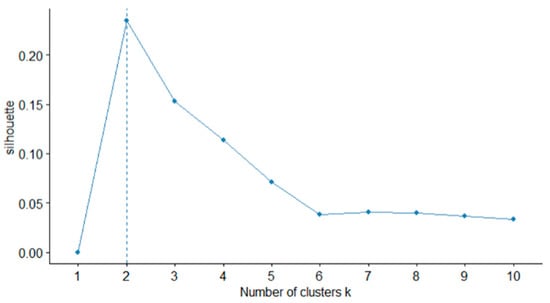 By applying K-means clustering to the patent embedding matrix derived through the process shown in Figure 3 above, technology clusters are formed and technology fields identified [42]. When performing K-means clustering, K, which is the number of clusters, is derived through the silhouette score, which is shown in Equation (5).