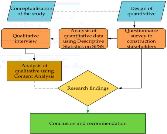 To achieve the objective of this study, the sequential mixed methods approach posited by Teddie and Tashakkori [45] and Östlund et al. [46] were used. The process of the sequential mixed methods approach used is presented in Figure 1.