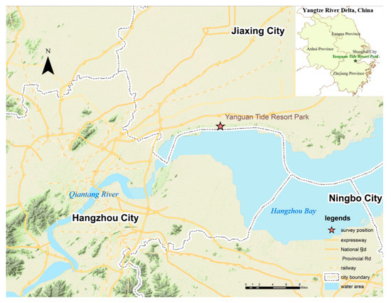 The Qiantang River, located in Zhejiang Province, flows eastward into the East China Sea. The tide at its estuary is well-known globally (Figure 2). With the change in geographical location, Yanguan in Haining has become the best resort for watching the tide since the Ming Dynasty. Yanguan Tide Resort Park has always been said to be a place for “hearing the sound before seeing the tide.” The specific location of the scenic spot is shown in Figure 3. Currently, relying on its unique natural wonders and perfect infrastructure, the scenic spot attracts many tourists every year (3.5 million in 2019). There is no research to calculate the economic value of Yanguan Tide Resort Park or to evaluate the economic value of the Qiantang River soundscape; hence, this study attempted to evaluate the economic value of the Qiantang River tide soundscape.