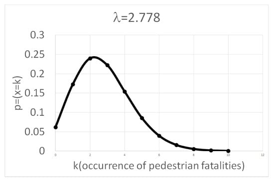 Poisson probability distribution for pedestrian fatalities in Jeddah.