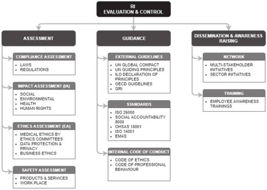 One of the major drawbacks to adopting RI is a lack of unity, of recognised approaches and professional standards for implementation and evaluation of RI [13]. Ethics assessment is a key element of RRI, which enables the identification and assessment of ethical issues in research and innovation [13]. Companies evaluate and control their activities and impact, including innovation, as part of their strategies to ensure that they meet the desired outcomes and create value. However, there is still considerable ambiguity with regard to evaluation of innovation aimed at strengthening companies’ responsibility and strategic planning, exploring competitive opportunities and mitigating negative human rights, societal, ethical and environmental impacts [14]. Furthermore, the private sector is diverse, perceptions and approaches developed and applied by large companies may not be well-suited for small and medium-sized enterprises (SMEs), and vice versa.