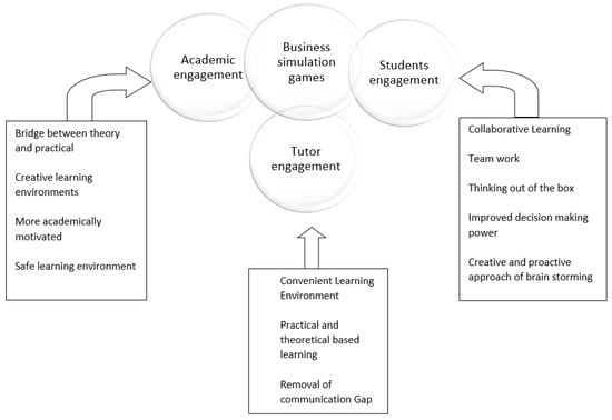According to Mawhirter and Garofalo [21], technical and decisive thinking skills can be boosted by providing students with a healthy learning environment. They can build a connection between the hypothetical and realistic information through simulation games. Furthermore, the inclusion of simulation games in online teaching can bring useful, productive, and greater results [22]. Business simulation games are a practical way of learning about business challenges and how to overcome those challenges in a risk-free environment. Previous literature and researchers have endorsed views that business simulation game motivation [23] can enhance critical experimental thinking and learning [19,24], time management [24], and teamwork and collaborative learning [19,23]. Vanevenhoven and Liguori [25], and Zhang [26] hold the view that entrepreneurial knowledge, skills, and activities are complicated not only at this critical time, but also in the natural environment. Therefore, it is important to acquire these skills and competencies. These skills and competencies can be gained and enhanced using business simulation games [27]. According to Kriz and Auchter [28], the German Ministry of Economics and Technology admire the importance of business simulation games, particularly in the field of entrepreneurship. They examined the results of their longitudinal study of EXIST prime cups from 2012 to 2014 where business simulation games had a positive and constructive impact on the students’ learning behavior toward entrepreneurship.