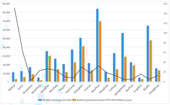 The rubber output, planting area, and gross domestic product (GDP) of all regions in Hainan Province.
