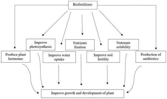 To help meet the escalating demand for food arising from the continuous expansion of the world’s population, different crop nourishment strategies are being explored by farmers. According to FAO’s estimates, the demand for agricultural products will increase to 60% by 2030 [1]. Enhancing the production while keeping the environment safe is one of the major challenges in the 21st century [2]. Fertilizers have been used extensively to increase crop production from arable land. Increasing use of chemical fertilizers in agriculture may make a country self-sufficient in food production, but chemicals have an adverse impact both on the environment and living organisms. In addition, the chemical fertilizers are expensive, affect the soil, reduce its water-holding capacity and fertility, cause imbalance in the soil nutrients, and result in unacceptable levels of water pollution [3]. On the other hand, biofertilizers are eco-friendly, cost-effective, non-toxic, and easy to apply; they help maintain soil structure and biodiversity of the agricultural land. Thus, they serve as a good substitute for chemical fertilizers [4,5].